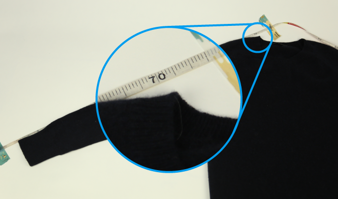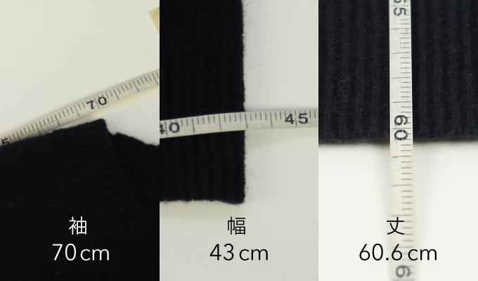 洗う前の袖の長さ、幅、丈の長さは次の通り。