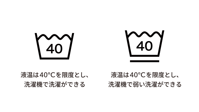 • 桶に数字」マーク → 洗濯機での弱水流洗いによる洗濯が可能